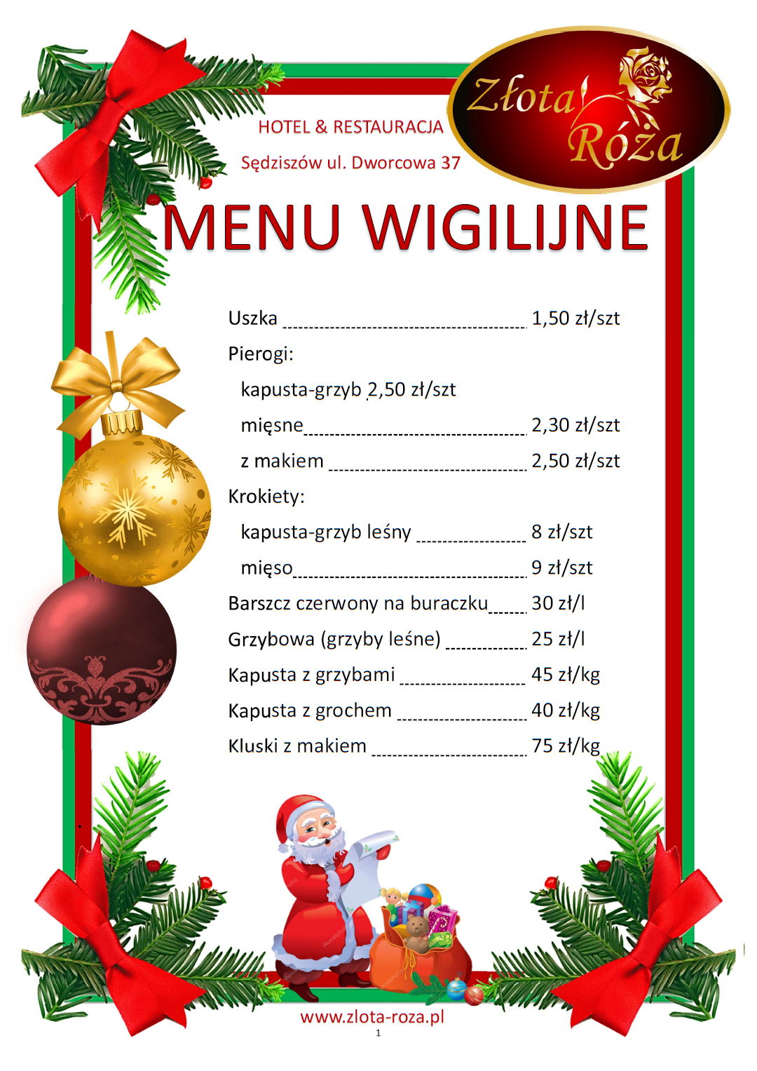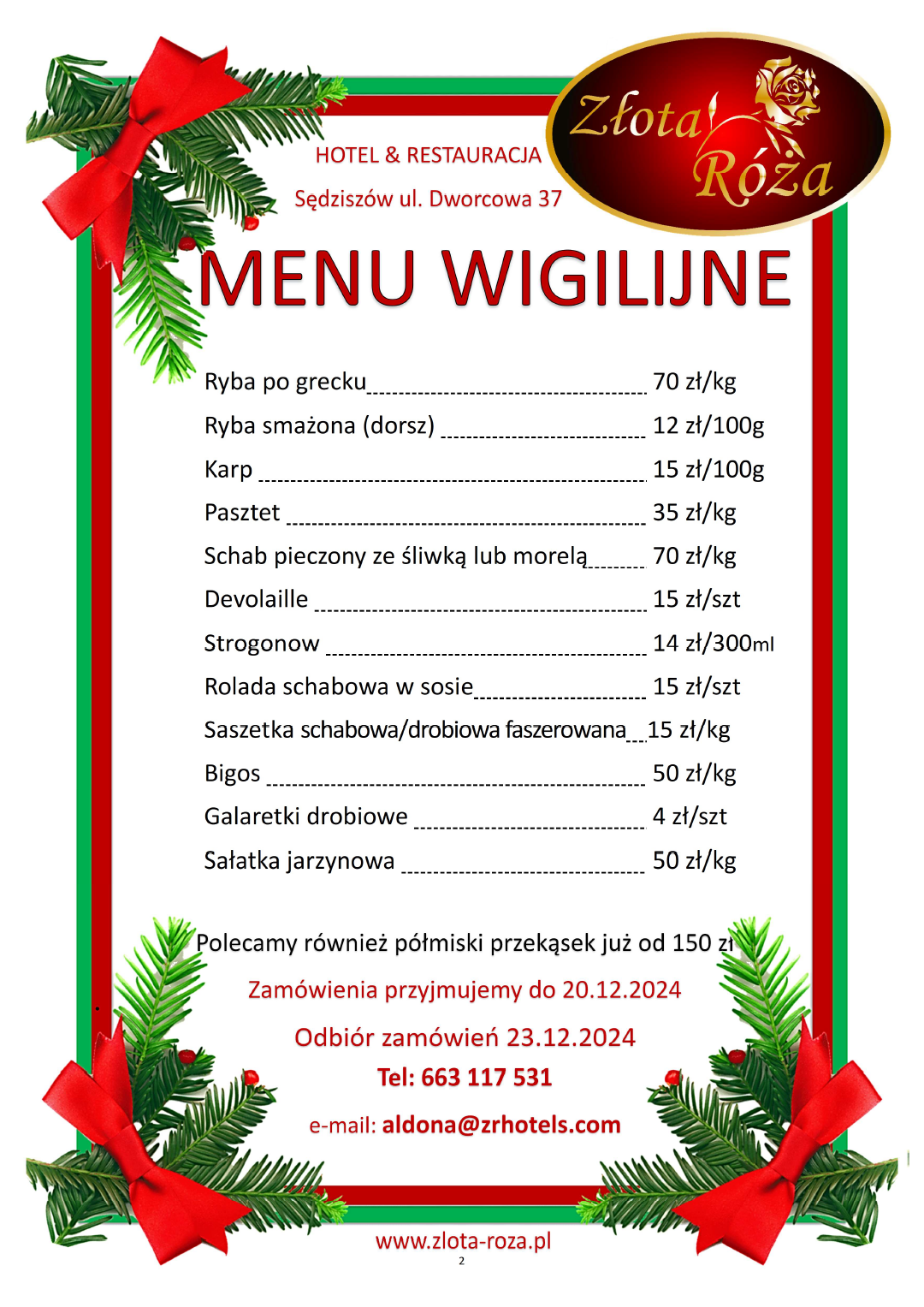 Menu wigilijne 2024- Catering wigilijny 2024 Złota Róża - Sędziszów
